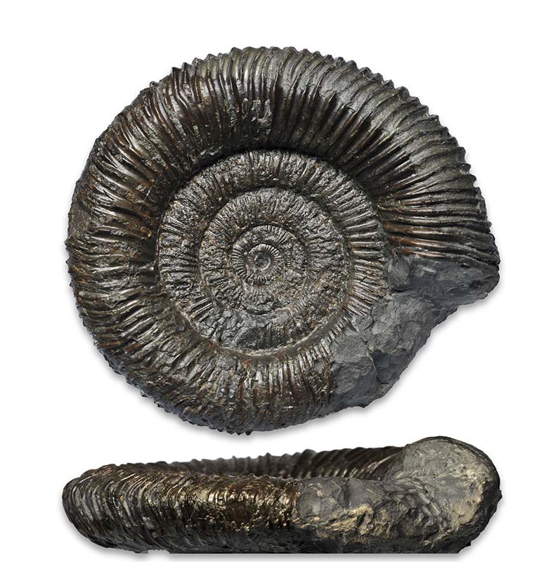 Dactylioceras sp. forma aegra excentrica, 8 cm, showing the bowl shape from the side