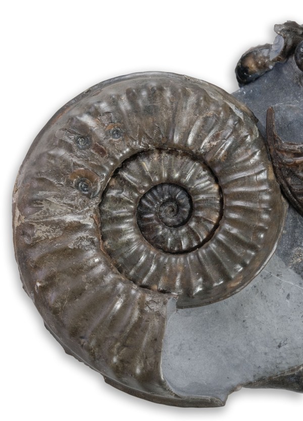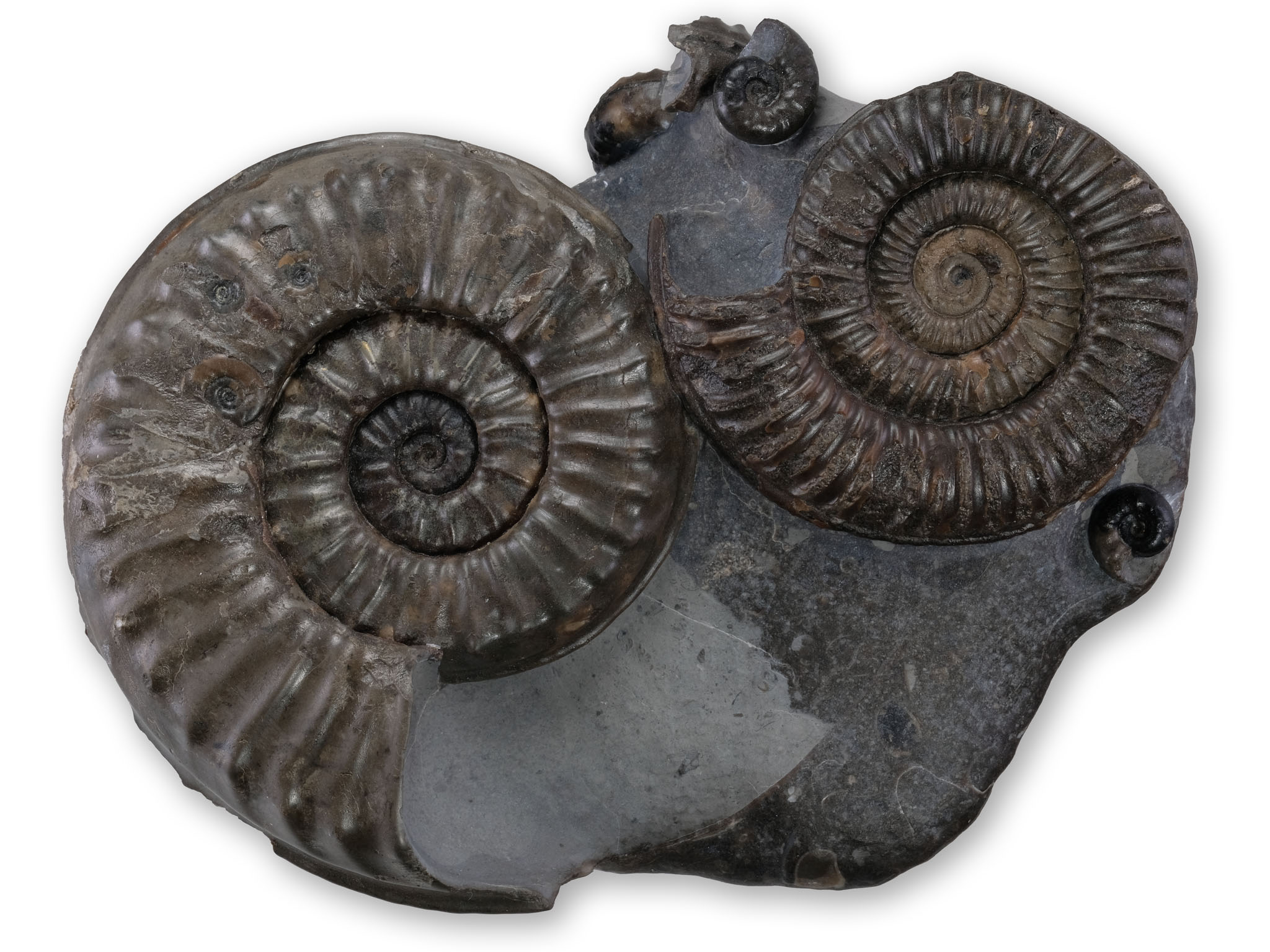 Coroniceras lyra (left, 85 mm) and Arnioceras ceratitoides (right, 55 mm)