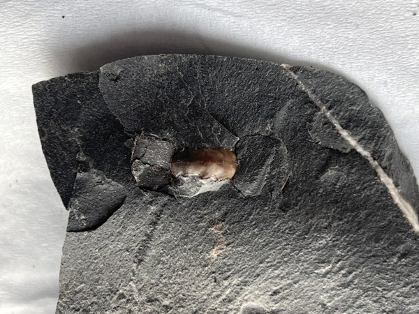 One ex situ nodule I opened with the hammer and it revealed a small ammonite, apparently split though the middle exposing a calcified inner whorl. It looked like the bigger outer whorl was also preserved, and I remember speculating if this might be something special… I bagged the two pieces of the nodule, but back in our holiday home when I did my find notes and a picture „as found“ I filed it under “small Euagassiceras”.